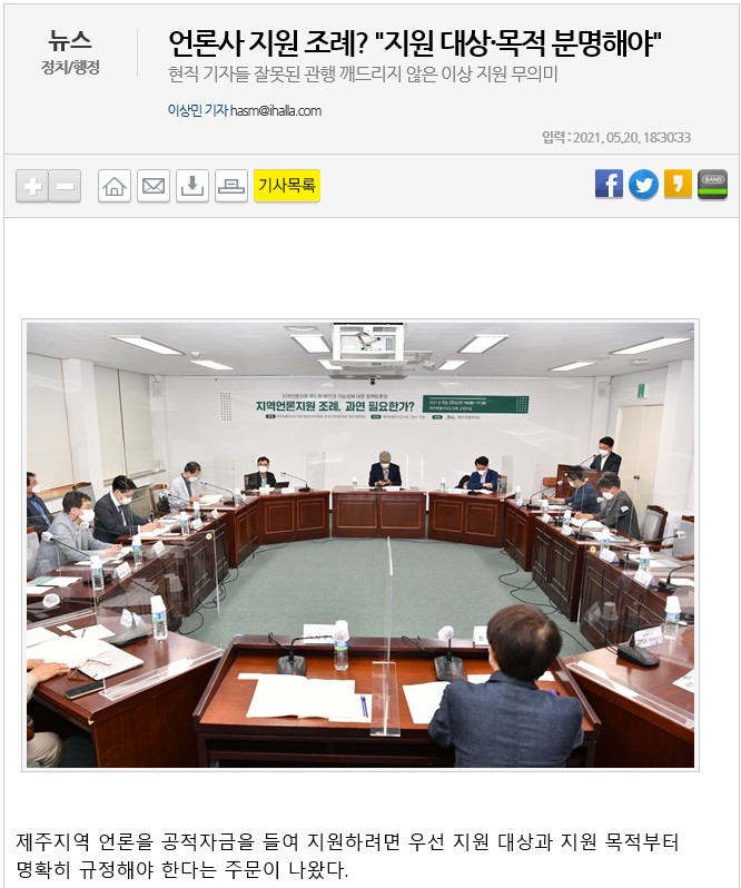 [한라일보] 지역언론지원 제도화 방안과 가능성에 대한 정책토론회