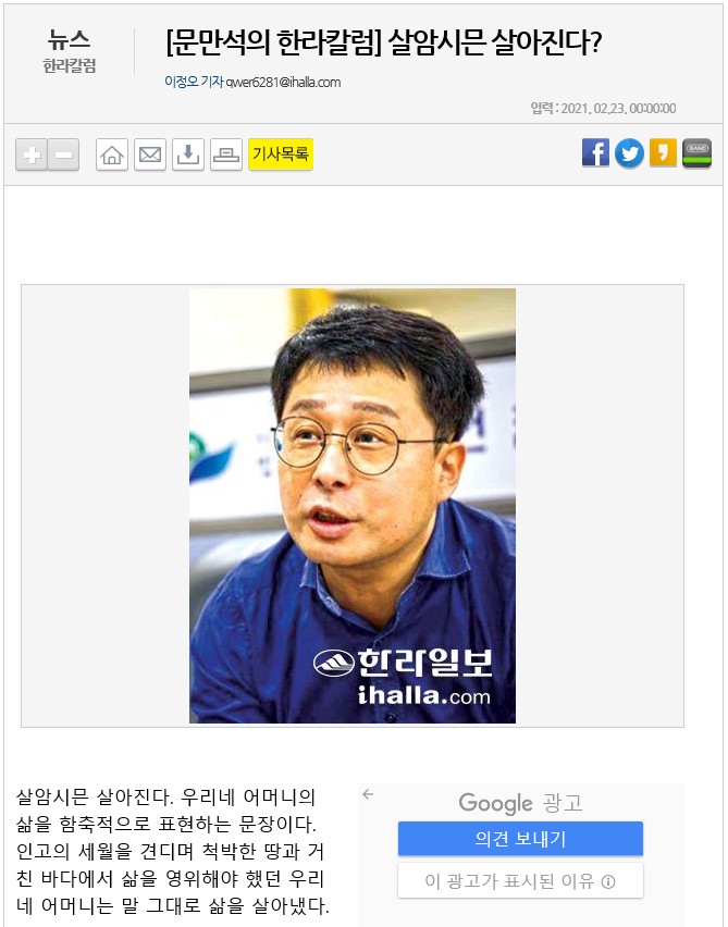 [문만석의 한라칼럼]살암시믄 살아진다?