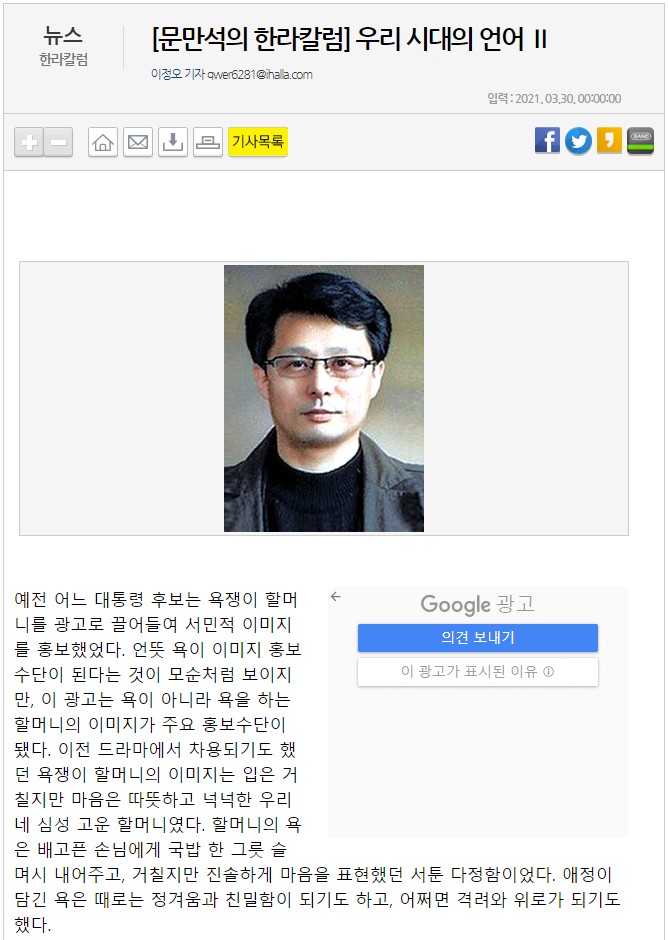 [문만석의 한라칼럼]우리시대의 언어II
