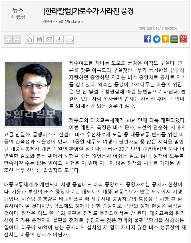 [한라칼럼] 가로수가 사라진 풍경 (한라일보 2017.10.17자)