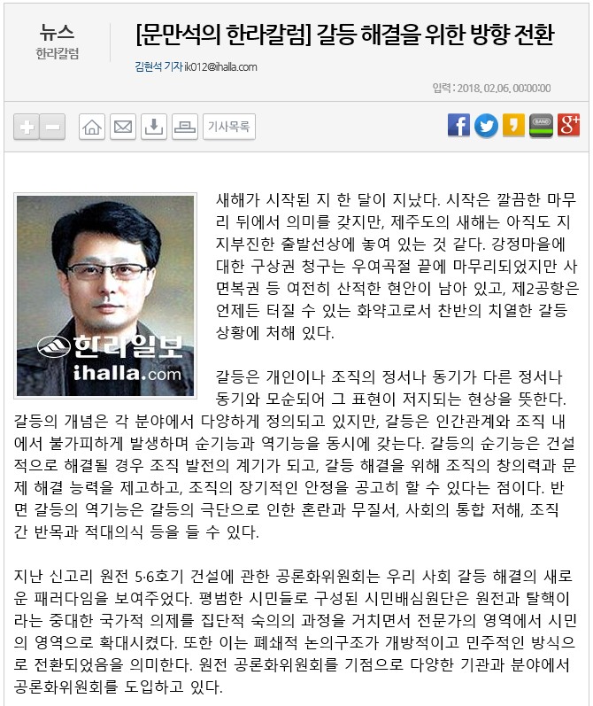 [한라칼럼] 갈등 해결을 위한 방향 전환