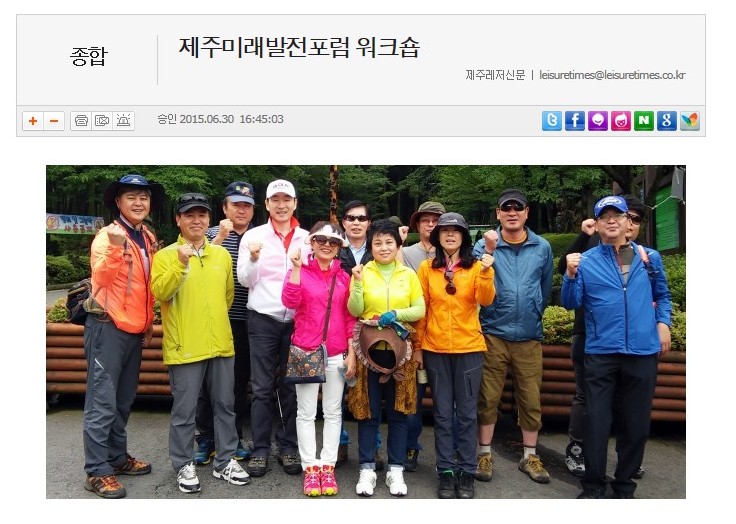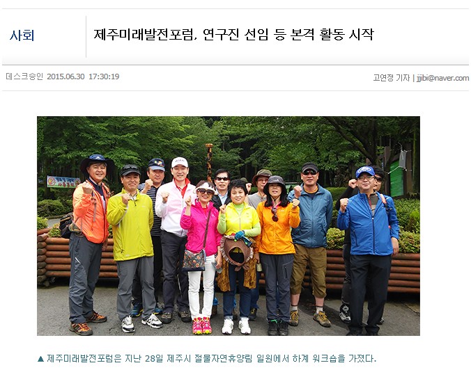 <제주레저신문> 제주미래발전포럼 워크숍 (2015. 6. 30)