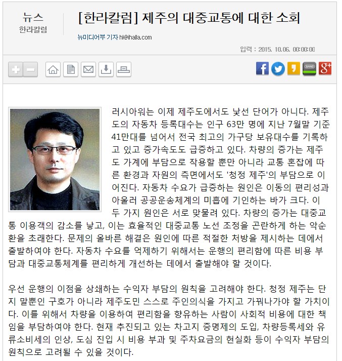 <한라칼럼> 제주의 대중교통에 대한 소회