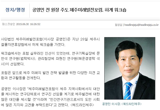 <헤드라인제주> 공영민 전 원장 주도 제주미래발전포럼, 하계 워크숍 (...