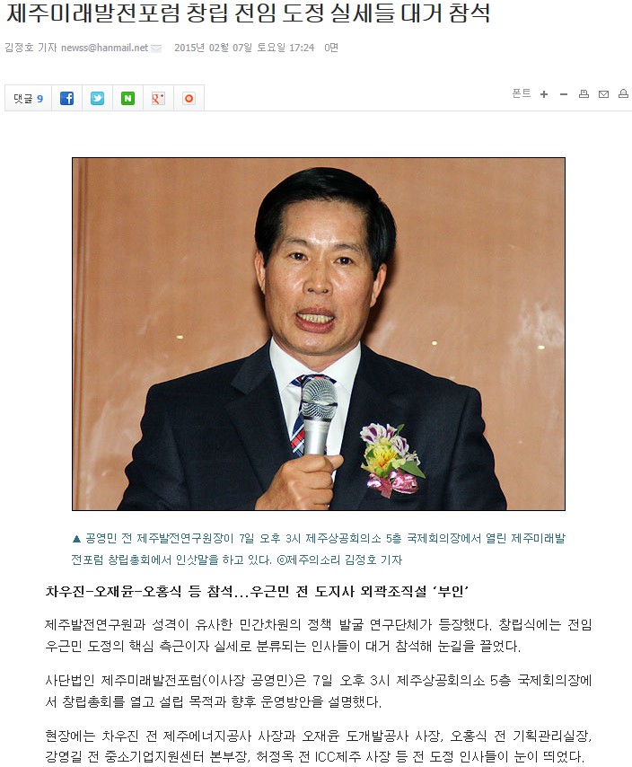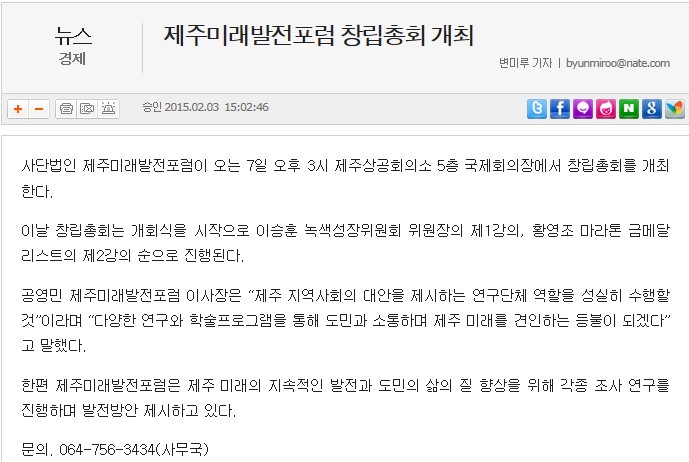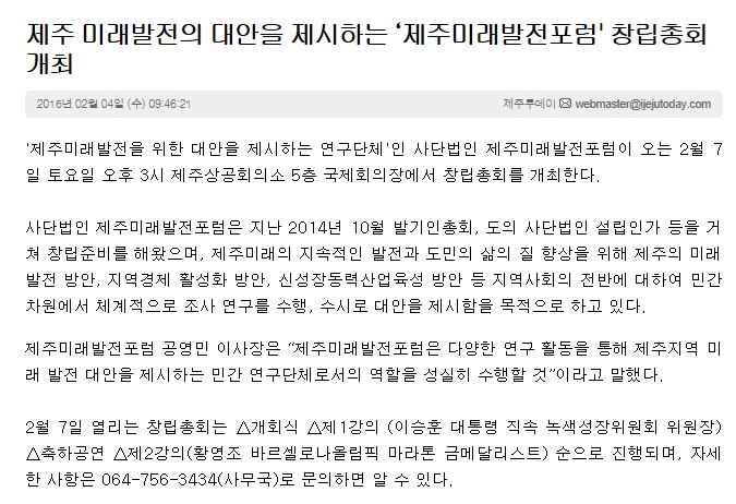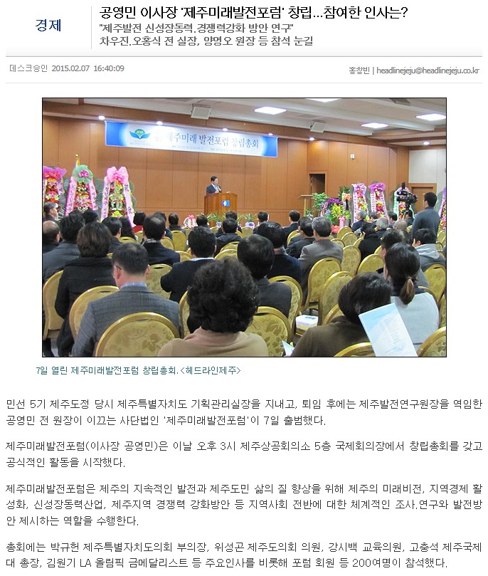 <뉴스제주> 제주미래발전포럼 창립총회 개최 (2015.02.03)