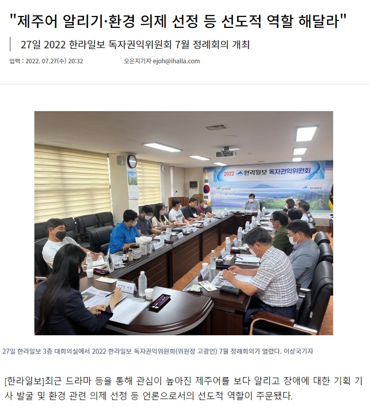 [한라일보 독자권익위원회] 7월 정례회의 "제주어 알리기·환경 의제 선...