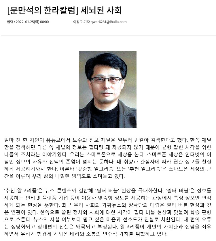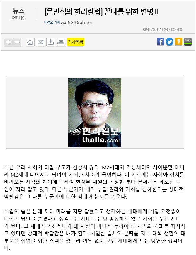 [문만석의 한라칼럼] 꼰대를 위한 변명Ⅱ