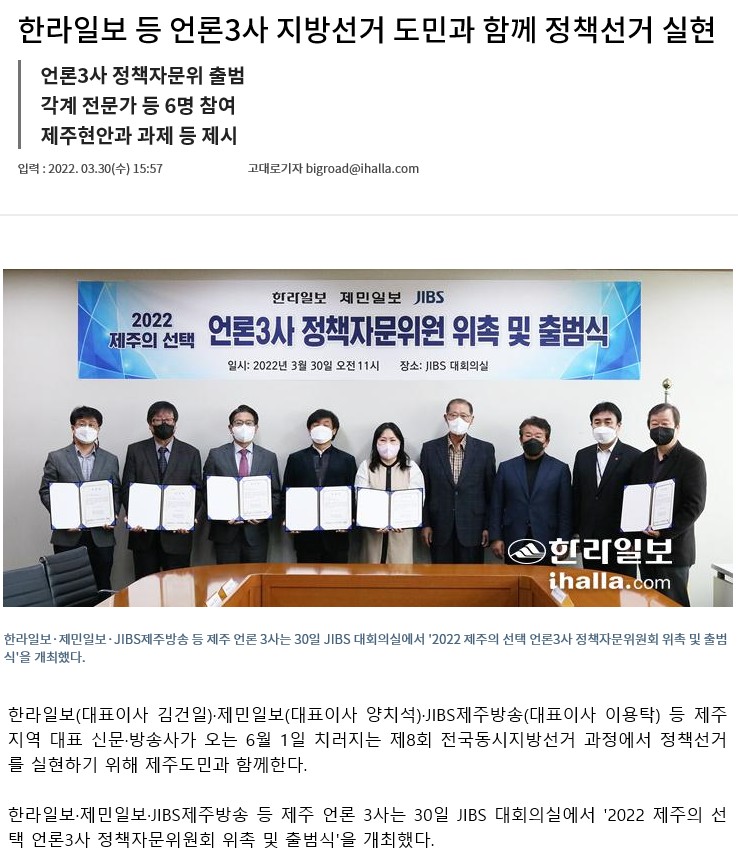 2022 제주의 선택 언론3사 정책자문위원 위촉 및 출범식