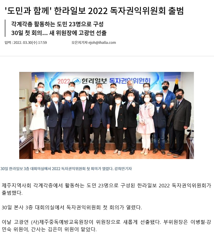 [한라일보] '도민과 함께' 한라일보 2022 독자권익위원회 출범